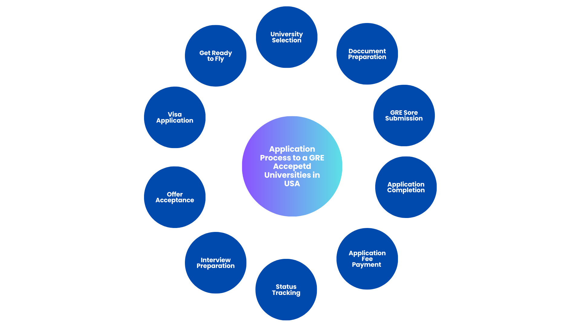 The application process to a GRE accepted university is quite similar. However, it involves several steps. Such as:
