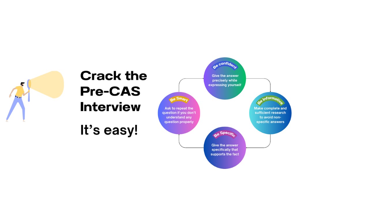 Pre-CAS interview is also known as the credibility interview. Successful completion of this interview and submission of all the necessary documents lead to the issuance of the CAS letter.