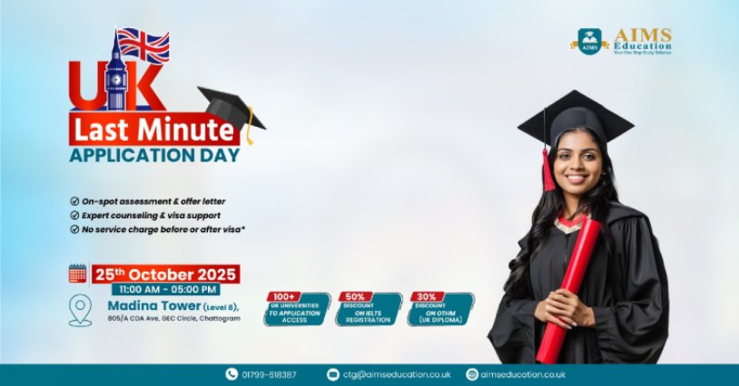 Registration Link: https://aimseducation.co.uk/apply-now/chattogram/